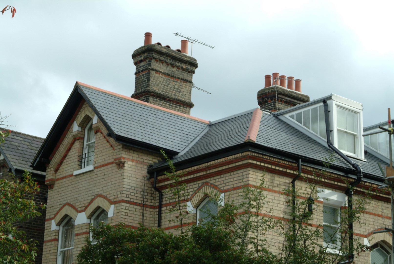 New slate and zinc roofing, brick work cleaned and interior over hall.